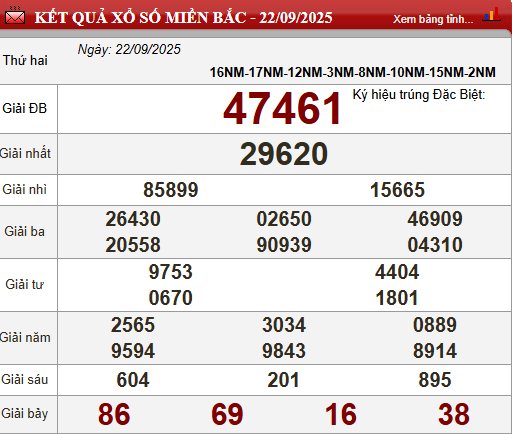 Xem lại kết quả & Phân tích kết quả XSMB ngày 22-09-2025Bảng kết quả số miền Bắc 22-09-2025Bảng kết quả số miền Bắc 22-09-2025