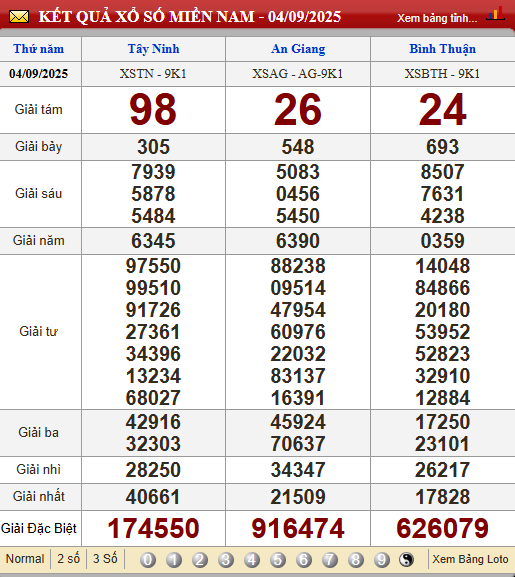 Xem lại kết quả & Phân tích kết quả XSMN ngày 04-09-2025Bảng kết quả lô tô xổ số miền nam 04/09/2025